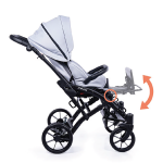 Înainte de a așeza copilul în scaunul rulant, asigurați-vă că cârligele sunt fixate corect prin apucarea scaunului și mișcarea lui ușoară. Un scaun instalat corect va rămâne în poziția sa. Sistemul de montare a scaunului folosit în scaunul rulant MEWA permite ca acesta să fie montat cu fața către înainte sau către spate, în direcția de deplasare.