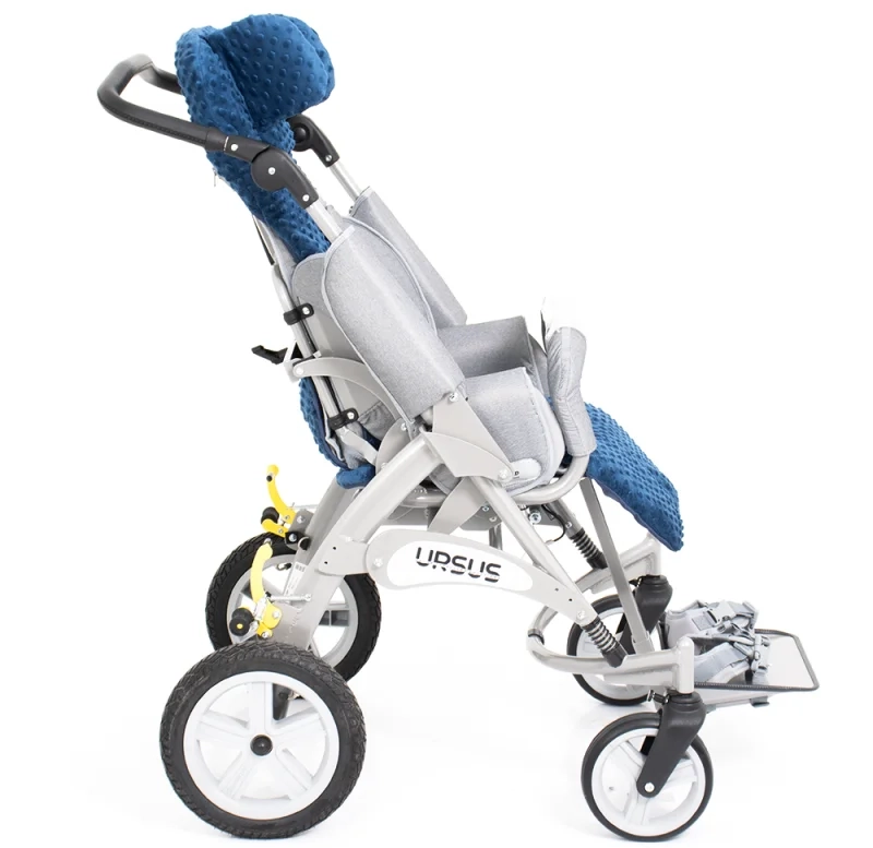 Dispozitivul oferă o gamă largă de reglaje: lățimea șezutului, adâncimea șezutului, înălțimea spătarului, unghiul de înclinare al spătarului, funcția de înclinare continuă TILT-IQ™, precum și posibilitatea de montare reversibilă a șezutului. URSUS™ este prevăzut cu o tapițerie rezistentă HYDRO™ de culoare gri. Pentru un confort suplimentar, scaunul rulant include o pernă reversibilă COMFORT, disponibilă în 5 variante de culoare. În plus, dispozitivul poate fi ușor transformat într-un șezlong, oferind copilului posibilitatea de a dormi confortabil în el.